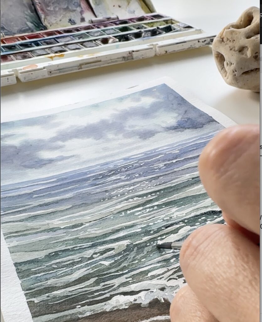 Ya manejas el agua y color. Conoces las bases de la acuarela. Pero cuando te enfrentas a la complejidad de un mar infinito bajo un cielo cambiante, te sientes perdida.